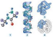 Виокремлюють чотири рівні структури білків (іл. 17).