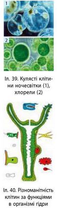 Такими є клітини твариноподібної істоти ночесвітки, зеленої водорості хлорели (іл. 39).