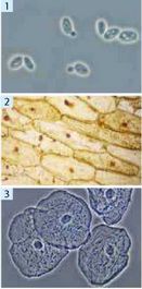 1. Розгляньте під мікроскопом готовий мікропрепарат клітин грибів (дріжджів чи мукора). Порівняйте побачене з електронною мікрофотографією та замалюйте клітину гриба в робочий зошит. На малюнку позначте клітинну стінку з хітину, ядро, запасливу вакуолю.