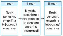 Іл. 44. Етапи зовнішнього обміну речовин, енергії та інформації