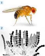 Іл. 52. Дрозофіла чорночерева (1) і нейроспора густа (2) -модельні організми для генетичних досліджень