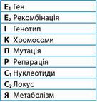 Зіставте запропоновані визначення із поняттями, заповніть табличку відповідей та отримайте назву терміна, яким позначають процес реалізації спадкової інформації.