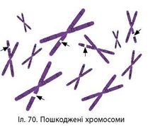 Це, по-перше, метаболізм клітини, в ході якого виникають вільні радикали, гідроген пероксид, вільний кисень тощо. По-друге, вода, що постійно гідролізує ДНК. І нарешті, помилки ферментів ДНК-полімераз (іл. 70).