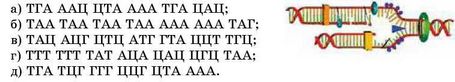 1. Виберіть послідовність нітрогеновмісних основ, яка має утворитися в процесі реплікації молекули ДНК на основі ланцюга - АЦТ ТТГ ГАТ ГАТ ТТТ АЦТ ГТГ: