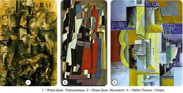 На картині Ж. Брака «Португалець» натуральні форми об’єкта розсікаються на багато дрібних граней, що утворюють динамічну кристалічну структуру.