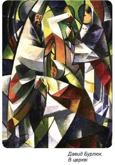Що відбувається на картині Давида Бурлюка «В церкві»? Яке емоційне враження справила вона на вас?