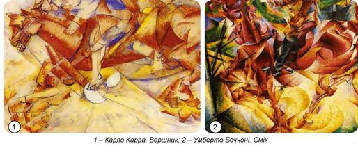 Інший художній напрям - футуризм оспівував прийдешню індустріальну епоху, прославляючи швидкість машин і ритмів життя загалом.