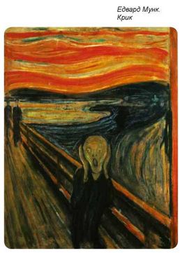 Норвезький художник Едвард Мунк живописними засобами передає образ світу, про який свого часу писав: «Мені увесь час