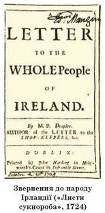 1724 року анонімно вийшли й розійшлися багатотисячним накладом бунтівні «Листи сукнороба», що закликали до бойкоту англійських товарів і неповноцінної англійської монети. Резонанс від «Листів...» був приголомшливим і повсюдним, отож Лондон був змушений терміново призначати нового намісника, щоб утихомирити ірландців.