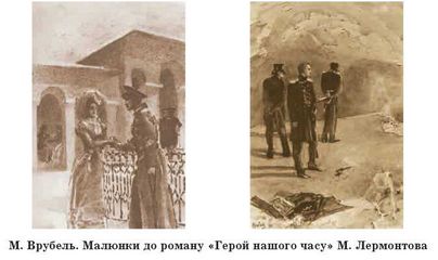 Розгляньте ілюстрації М. Врубеля до роману М. Лермонтова «Герой нашого часу» — «Княжна Мері і Грушницький», «Дуель Печоріна з Грушницьким». Які епізоди зображено на ілюстраціях? Які почуття персонажів роману передав художник? Підтвердьте свою думку цитатами.