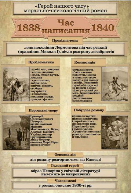 Запам’ятайте! Творчість Михайла Юрійовича Лєрмонтова — духовного спадкоємця О. С. Пушкіна — одна з найвищих вершин російської та світової літератури. Лірика поета поруч із ранньою творчістю Пушкіна визначила злет російського романтизму. Про що б не писав Лермонтов — про далеке минуле чи про кохання і дружбу, про пошуки сенсу буття,— його ідеї й образи завжди насичені почуттями патріотизму й волелюбності. Мотиви свободи і трагічної самотності в поезії Лєрмонтова втілено так сильно і в такій загостреній формі, як у жодного з російських поетів.