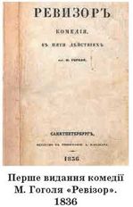 1836 року виходить друком знаменита п’єса М. В. Гоголя «Ревізор», у якій розповідається про молодого чиновника Хле-стакова, що опинився в невеликому провінційному містечку без грошей. Місцеві