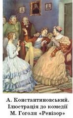 «Ревізор» — це сучасна комедія, у якій порушено суспільні теми, змальовано живих людей, а не узагальнені людські вади (В. Андро-сов, сучасник М. В. Гоголя) |