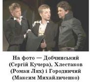 «Хлестаков. Та мене вже скрізь знають... З гарненькими актрисами знайомий. Я ж бо теж різні водевільчики. Літераторів часто бачу. З Пушкіним на дружній нозі. Бувало часто кажу йому: «Ну, що, брате Пушкіне?» — «Та так, брате»,— відповідає було: «Якось так усе.» Великий оригінал.
