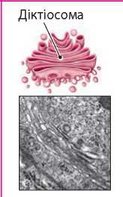 Утворений системою діктіосом. Діктіосоми мають вигляд стовпчиків із 5-20 пласких мембранних мішечків (цистерн), які розподілені в цитоплазмі окремо або з'єднуються в одну структуру |