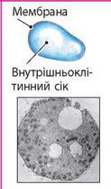 Залежно від складу рідини, яка її заповнює, виконує різні функції. Травні вакуолі гетеротрофів відповідають за травлення їжі. Вакуолі автотрофів накопичують продукти життєдіяльності, беруть участь у регуляції водно-сольового обміну, підтриманні тургорного тиску в клітинах і накопиченні резервних речовин |