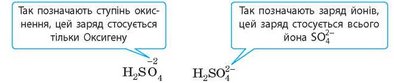 знака рівності записують стрілку. Записуючи формули йонів у розчині, заряд йонів указують дещо по-іншому, ніж у записі ступеня окиснення: спочатку записують цифрове значення, а потім знак заряду (в однозарядних йонах цифру 1 зазвичай не пишуть).